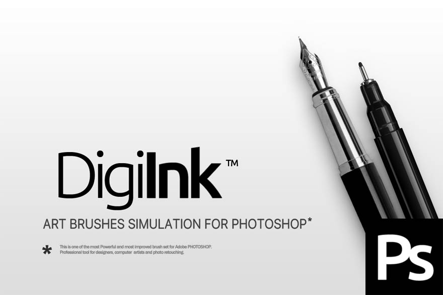 Accurate Qualitative hand-responsible ink brushes for Photoshop CS5+ CC+ Brilliant choice for any art & design hard edges sketching with your stylus in your Photoshop.