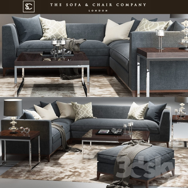 Pollock转角沙发,茶几,装饰品,台灯模型