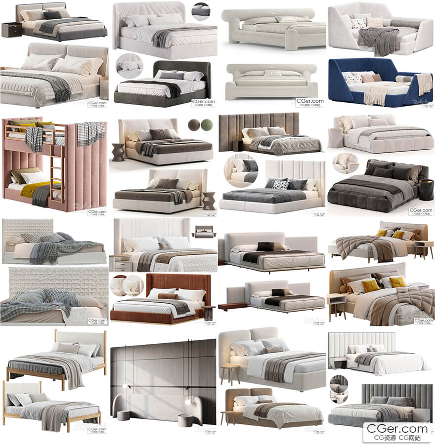 Bolzan 工厂生产的床系列 Sheen 风格的粘土床头板